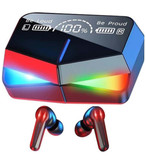 ایرپاد گیمینگ M28 مجهز به تراشه میزبان دوگانه هوشمند. هر دو هدفون برای کاهش سرعت تاخیر و اتصال مداوم به هم وصل شده اند. اتصال آن دستگاه های master و slave را محدود می کند، فقط کافی است هر زمان که خواستید یکی را بردارید و در هر زمان می توانید از آن استفاده کنید نسل سوم موتور حذف نویز هوشمند سطح ACC/SBC می تواند نویز را با توجه به منبع صدا معکوس کرده و مشکل کف نویز بلوتوث را حل کند. تاخیر کم در حالت بازی، زمان پاسخگویی 40 میلی ثانیه، تاخیر 0.040 ثانیه در حالت بازی، یک هدست خوب برای انجام بازی. درصد شارژ هر دو ایرباد به موقع نمایش داده می شود، بدون باز کردن درپوش قابل مشاهده است. هدفون ها می توانند 6 ساعت کار کنند، می توانند 4-6 بار در جعبه شارژ شوند. این نوع هدفون بلوتوثی چندکاره است . شما به راحتی می توانید با امکانات لمسی گوشی کلیه ی نیازهای خود اعم از قطع و وصل کردن مکالمه ، کم و زیاد کردن صدا ، پلی و استاپ کردن و تعویض موسیقی را انجام دهید. ایرپاد گیمینگ مدل M28 دارای یک صفحه ی LED برای نمایش وضعیت شارژ باتری است . یک محفظه ی شارژ به ظرفیت 2000 میلی آمپر ساعت دارد که به راحتی می توانید تا 5 بار آن را شارژ کنید. ازمشخصات دیگر آن ضدآب و ضدتعریق بودن آن است. مدل M28 یک هدست بلوتوثی مخصوص گیم بوده که از کیفیت صدا و میکروفون خوبی بهره میبرد. معمولا مشکل کاربران در هنگام استفاده از هدستها شارژ کم هدست در هنگام استفاده بوده که این امر باعث شده تا نیاز به شارژ پیاپی محفظه داشته باشند، اما مدل M28 دارای یک محفظه شارژ به ظرفیت 2000 میلی آمپر ساعت است که توانایی شارژ هدستها را تا 5 مرتبه داشته و همچنین توانایی شارژ یک گوشی دیگر را نیز دارد. به همین دلیل این هدست نه تنها شما را از مشکل شارژ پیاپی رها میکند، بلکه میتواند به عنوان یک پاوربانک 2000 میلیآمپری نیز برای شما عمل کرده و گوشی شما رو شارژ کند. طراحی M28 مخصوص گیمرها است و همچنین طراحی نور روی محفظه باعث شده تا جذابیت گیمری خاصی نیز پیدا کند. از دیگر جذابیتهای این محصول چیپست هوشمند آن بوده که ترکیب آن با سنسورهای تاچ هندزفری باعث شده تا بتوان به راحتی با دستورات لمس گوشی کل نیازهای کاربر اعم از قطع و وصل مکالمه، کم و زیاد کردن صدا و پلی و استاپ و تعویض موزیک را پاسخ داد. در آخر، طراح محصول برای هر چه بهتر شدن این محصول دو تم گیمینگ و موزیک برای آن در نظر گرفته که با استفاده از دستورات داخل دفترچه راهنمای فارسی میتوانید به راحتی این دو تم را تغییر دهید. محدوده عملکرد 20 متر عمر باتری هدفون در حالت استندبای 4-6 ساعت عمر باتری محفظه شارژ 4-6 ساعت پاسخ فرکانسی 2.402-2.480 هرتز زمان مورد نیاز برای شارژ محفظه 2 ساعت زمان موردنیاز برای شارژ هدفون 1-2 ساعت